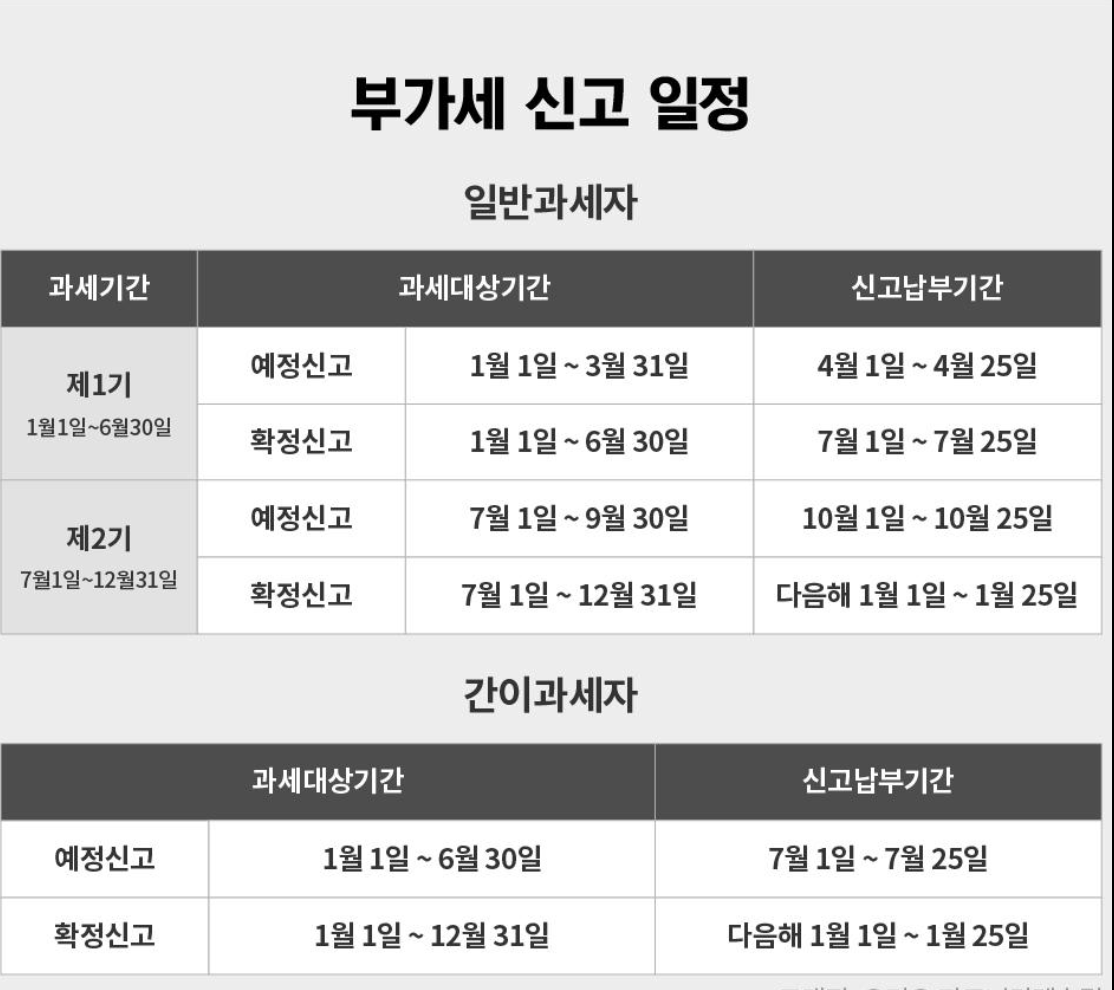 신고기간 놓치면 손해 부가가치세 신고일정